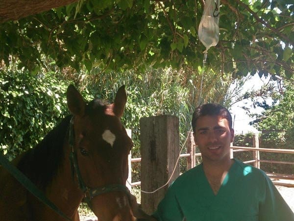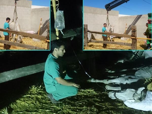 Yegua de 30 años de edad con incapacidad para levantarse. Se le administró un tratamiento de fluidoterapia compensada intensiva y alimentación por sondaje nasogástrico